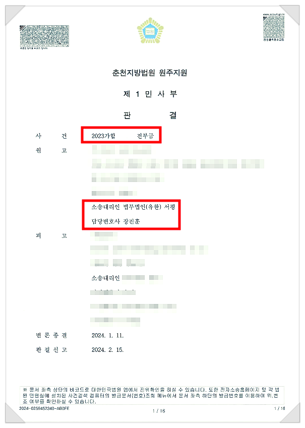 장진훈 변호사의 성공사례를 소개합니다. - 원고 측 대리