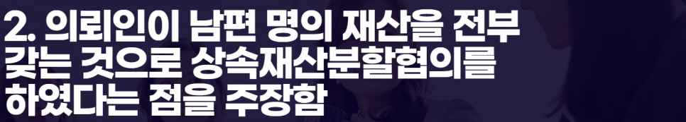 2. 의뢰인이 남편 명의 재산을 전부 갖는 것으로 상속재산분할협의를 하였다는 점을 주장함
