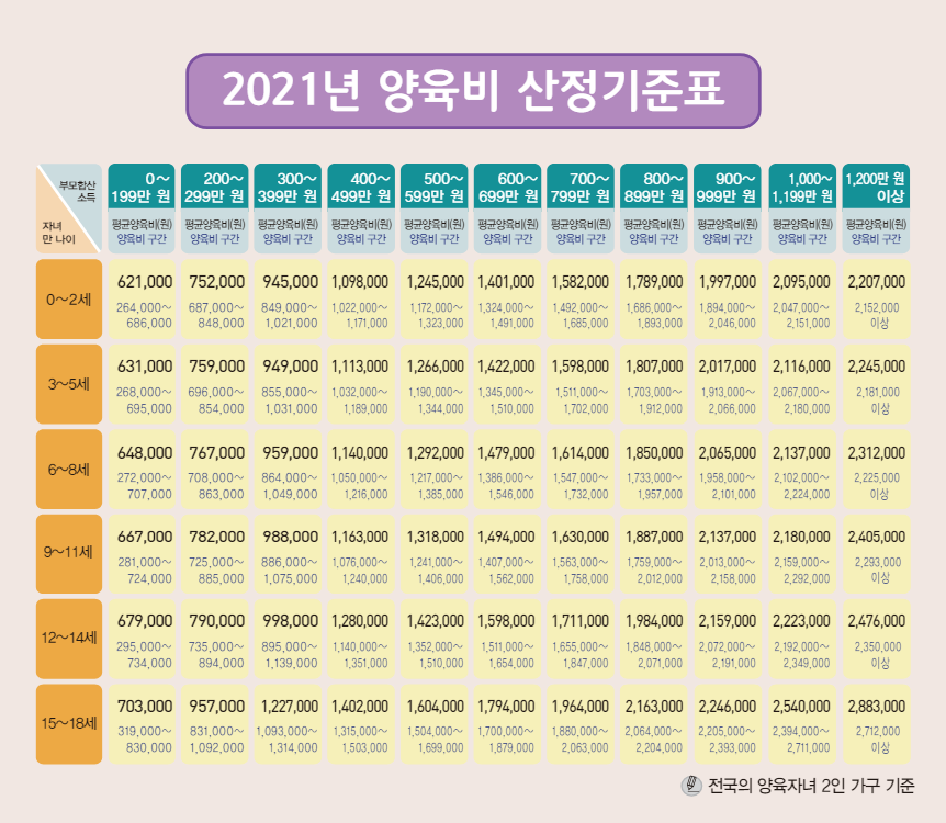 2021년 기준 양육비산정기준표