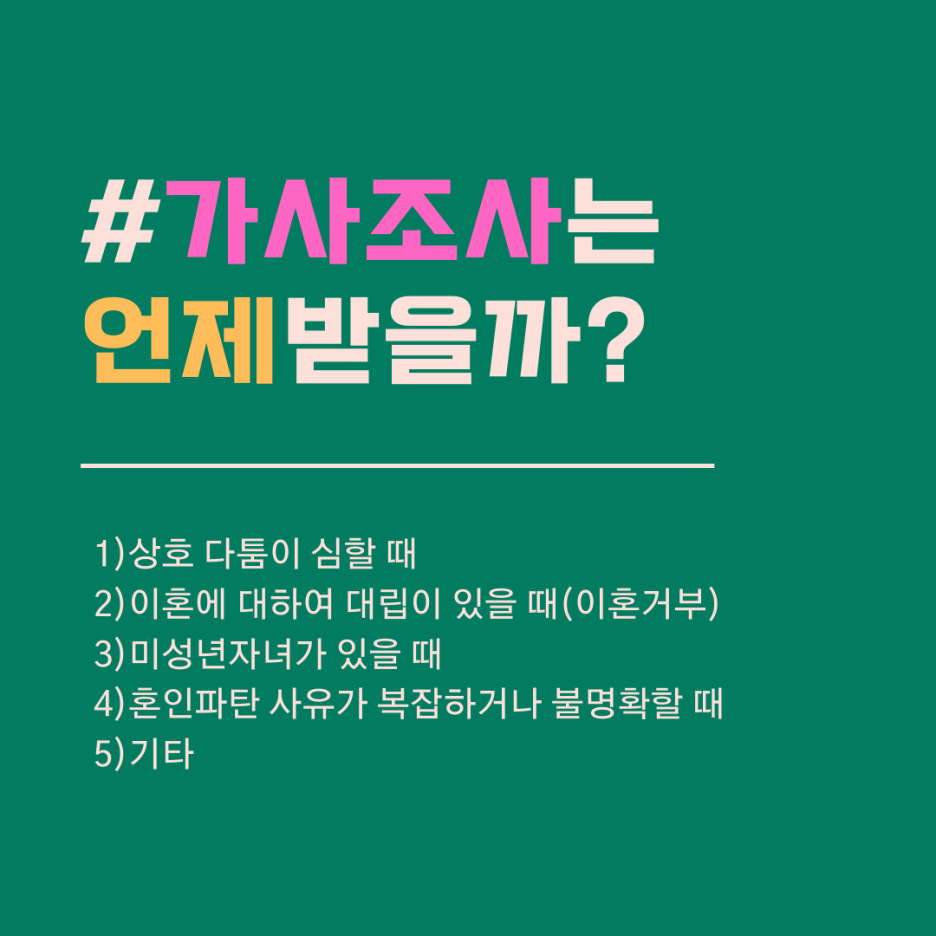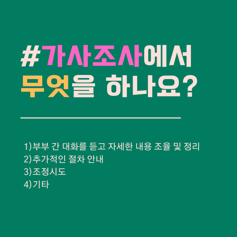 가사조사시 갈등이 너무 심하다면 추가 조사나 상담절차를 안내해주기도 합니다.