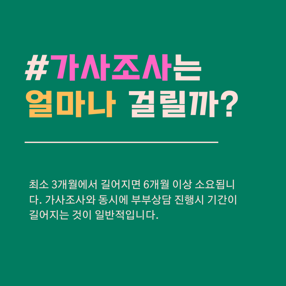 부부상담이 이루어지면 가사조사 후 부부상담이 이루어지고 이 경우 총 5-6개월 정도의 시간이 걸리는 편입니다.