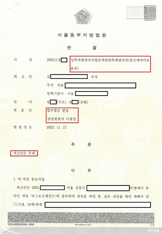 해당사건의 경우에도 PC방에서 유명한 게임인 '리그오브레전드' 플레이하는 도중 상대방측에 성적인 채팅을 작성하여 상대방측에서 통신매체이용음란죄로 의뢰인을 특정하여 고소하게 되었습니다.