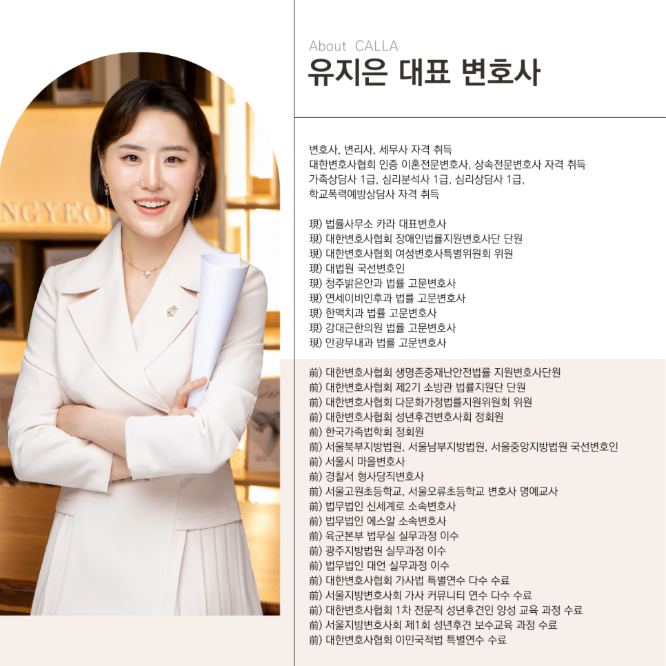 법률사무소 카라 유지은 대표변호사는 이혼/상속전문변호사로 직접 상담합니다.