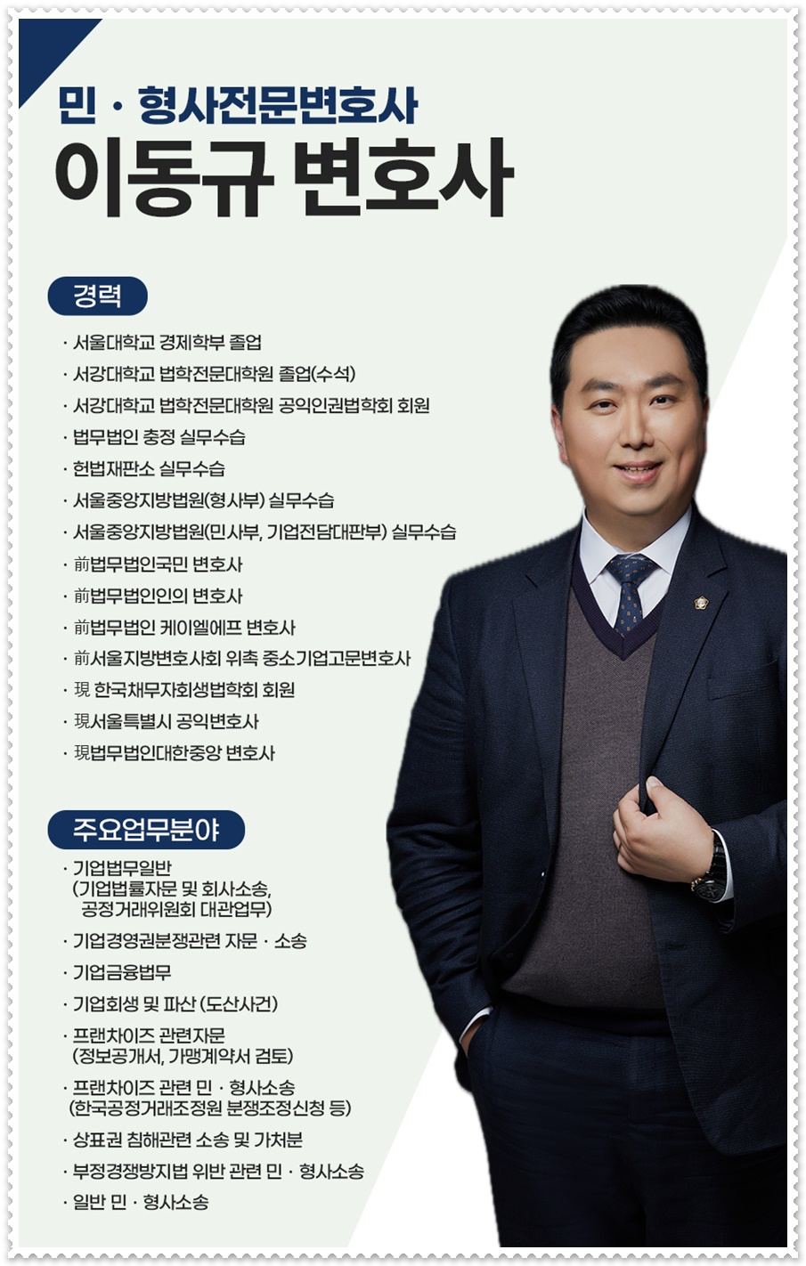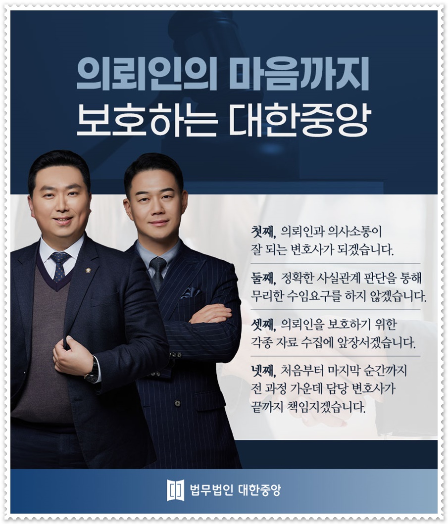 현재 법무법인대한중앙에서는 역량을 갖춘 변호사가 근속하고 있는데요, 의뢰주시는 분에게 맞춘 법률서비스를 제공해드리고 있습니다. 사안에 대한 적절한 해결 방안을 제공해드리는 법무법인대한중앙이 되도록 하겠습니다.