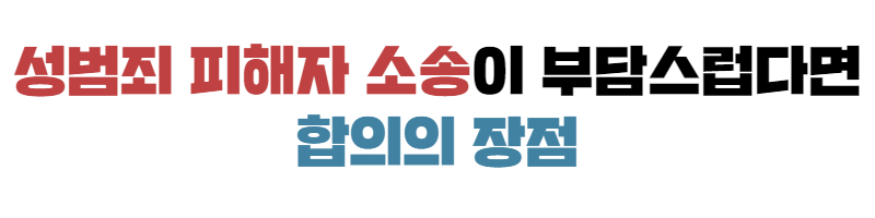 성범죄로 정신적 고통을 입은 피해자가 곧바로 피해 회복을 할 수 없고 오히려 긴 시간을 소송에 매달리며 다투면서 고통을 겪어야 한다는 두려움 때문에 대응을 망설이시는 분들이 많은데요, 이런 상황이라면 소송이 아니더라도 합의를 통해 신속하게 피해 회복을 할 수 있습니다.