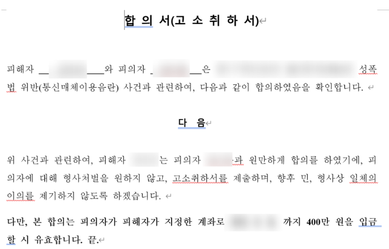 고소를 신속하고 정확히 진행한 끝에 경찰에서 인스타측에 영장 집행하여 피고소인들 정보를 받게 되었고, 곧 경찰에서 송치가 이뤄지게 되었습니다. 그리고 검찰단계에서 형사조정 절차로 넘어가 사죄와 함께 최대한의 합의금으로 합의 성공하게 되었습니다.