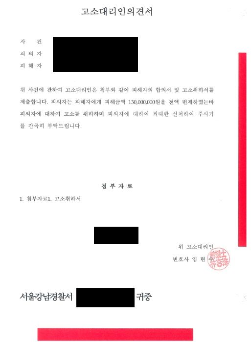 또한, 의뢰인이 다시는 이 사건에 휘말리거나 신상이 노출되는 불안감을 겪지 않도록, 신속하게 합의서를 작성하고 고소 취하 절차를 마무리하여 사건을 조용하고 완벽하게 종결지었습니다.