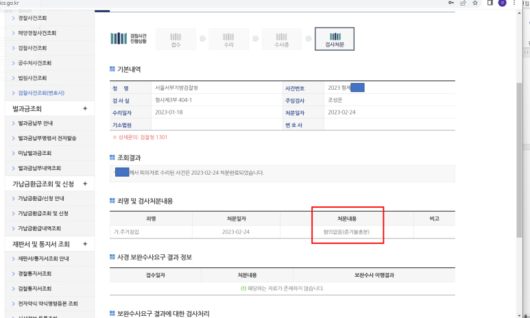 형사사법포털을 통해 확인한 검찰 수사 결과입니다.
