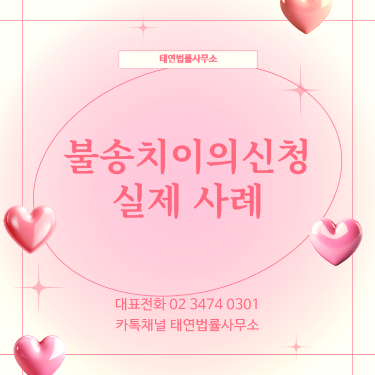 다수의 성공 사례를 가지고 있는 태연법률사무소를 찾아주신다면, 저희 사무실이 가지고 있는 다수의 성공사례중 또다른 성공사례가 될 수 있도록 만족스러운 성과를 위해 의뢰인의 입장에서 함께 대응해 나갈것을 약속드립니다.