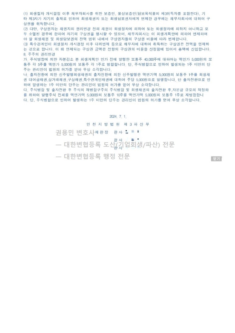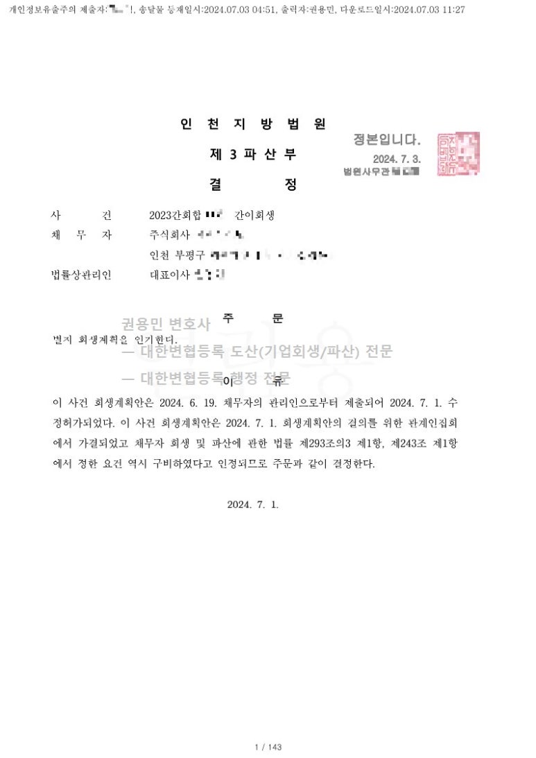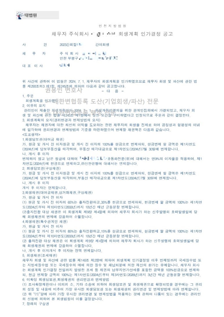 2024. 07. 01. 법인회생인가 - 인천지방법원