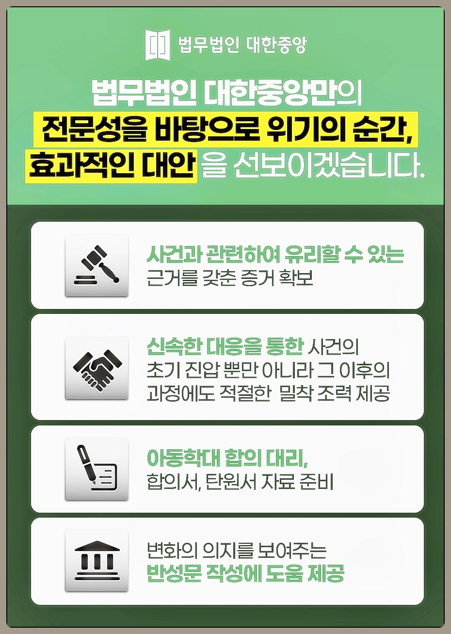 어느 쪽도 억울한 상황에 처하지 않으시도록 체계적인 솔루션을 제시해 드리고 있습니다.