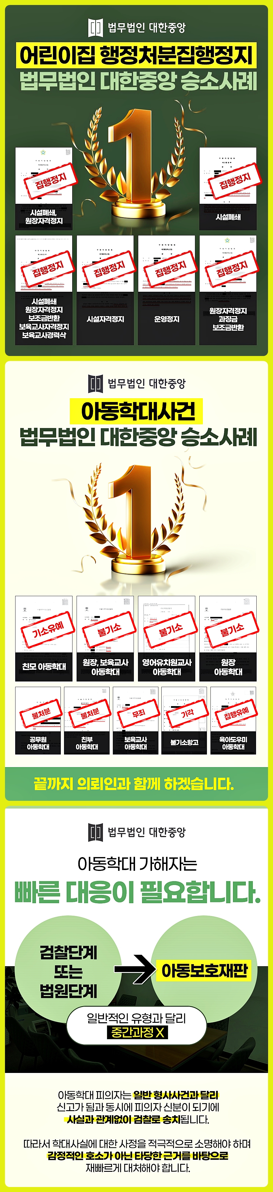 유치원 아동학대로 무죄를 판정 받지 못한다면 원 운영에도 차질이 생길 수 있고 교사라는 직업을 내려놓아야 할 수 있습니다. 억울한 상황에서 초동대처를 제대로 하지 못해 위기가 커지는 것을 방어하기 위해서라도 반드시 세부적인 조건은 모두 따져보고 마무리 지어 줄 수 있도록 하셔야 합니다. 꼼꼼하게 대응하지 못한다면 위기는 걷잡을 수 없이 커지게 된다는 사실, 필시 기적해주시길 바랍니다.