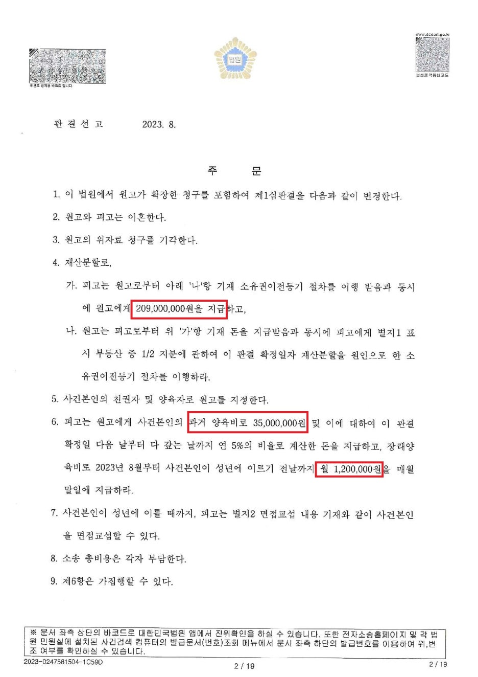 이 판결문을 받으신 후