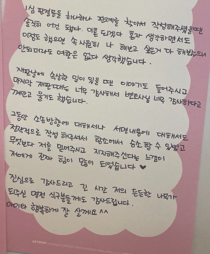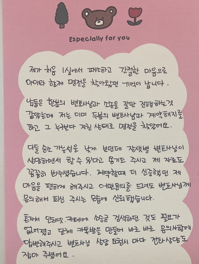 항소에서 승소할 수 있었고, 무엇보다 저를 믿어주시고 지지해주신다는 느낌이