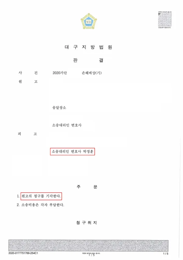 승소로 우리 의뢰인 분의 억울함을 풀어 드릴 수 있었습니다.