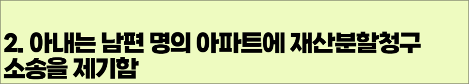 2. 아내는 남편 명의 아파트에 재산분할청구소송을 제기함