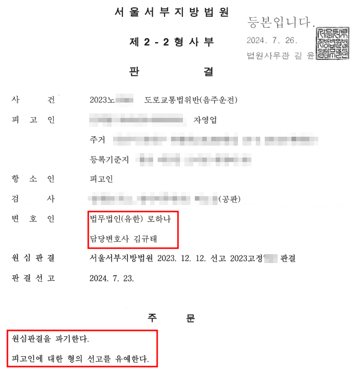 최근 경찰단계부터 법원 항소심까지지 진행했던 음주운전 피의대리 사건에서 원심의 벌금형이 부당함을 다툰 항소가 인용되어 선고유예형을 선고받은 성공 사례를 소개하고자 합니다.