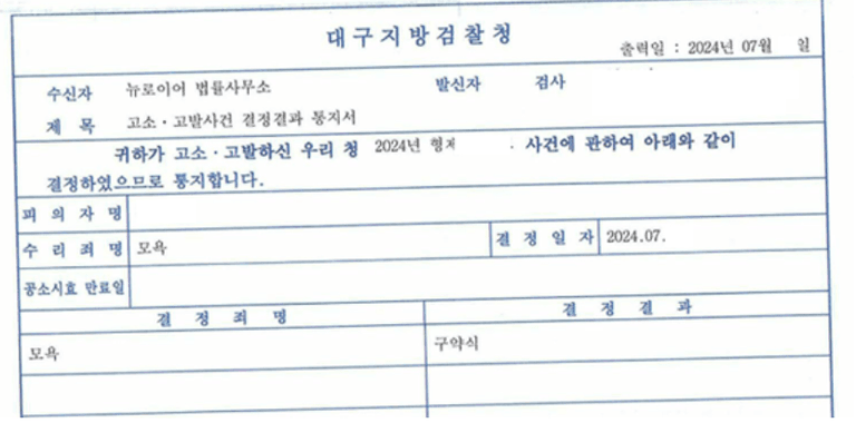 저희가 고소장에서 사실관계와 법리적 주장을 치밀하게 개진하였고, 고소인 조사 역시 철저하게 준비하여 도와드린 결과, 상대방은 경찰에서 송치가 되었으며 최종적으로 검찰에서 벌금형의 구약식 처분을 받게 되었습니다.