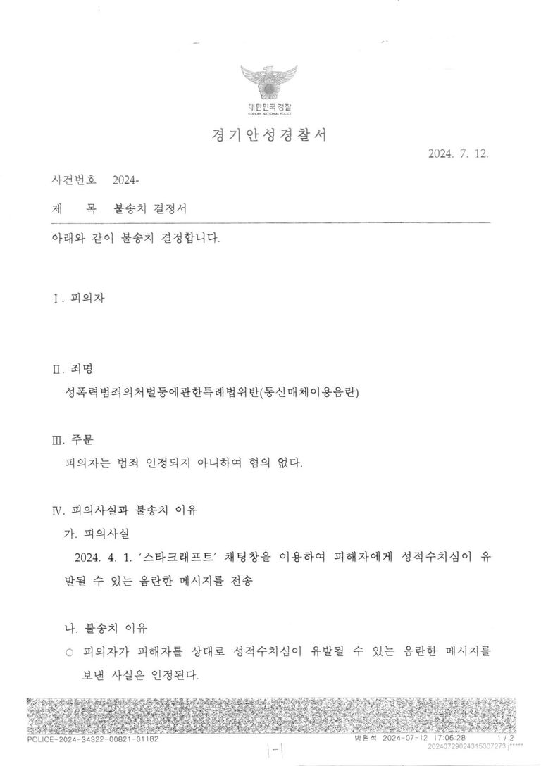 본 변호인의 의견대로 불송치처분을 내려주게 되었습니다.