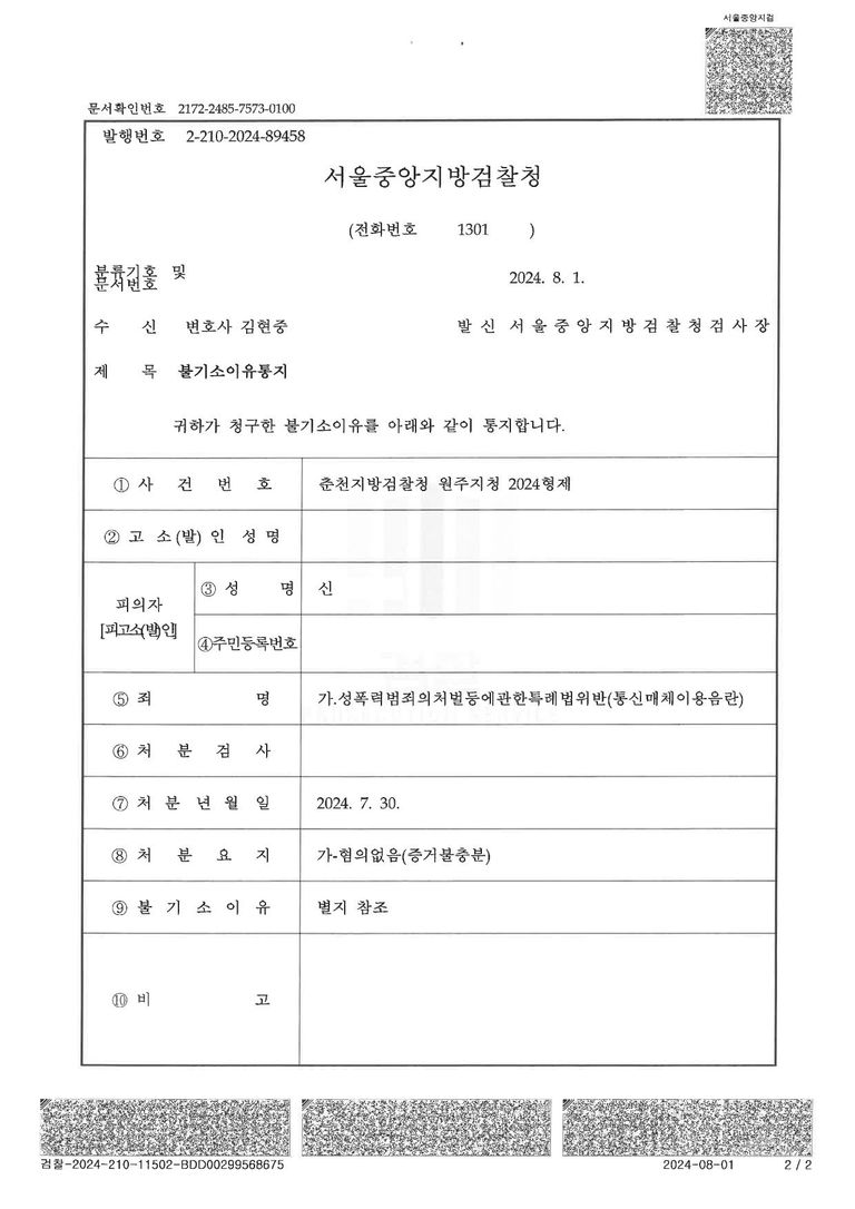이에 검사는 본 변호인의 의견대로 무혐의처분을 내려주게 되었습니다.