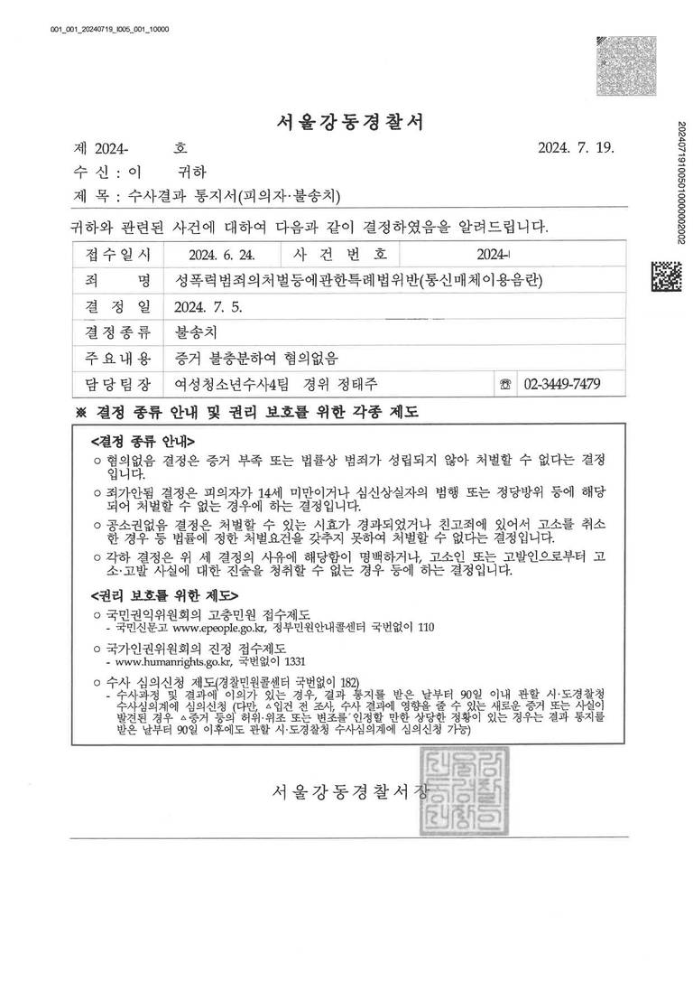 이에 경찰에서는 본 변호인의 의견대로 불송치처분을 내려주게 되었습니다.