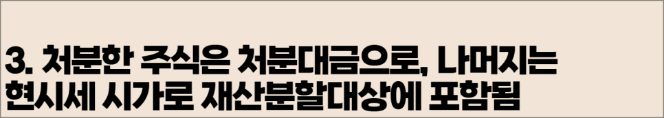 3. 처분한 주식은 처분대금으로, 나머지는 현시세 시가로 재산분할대상에 포함됨