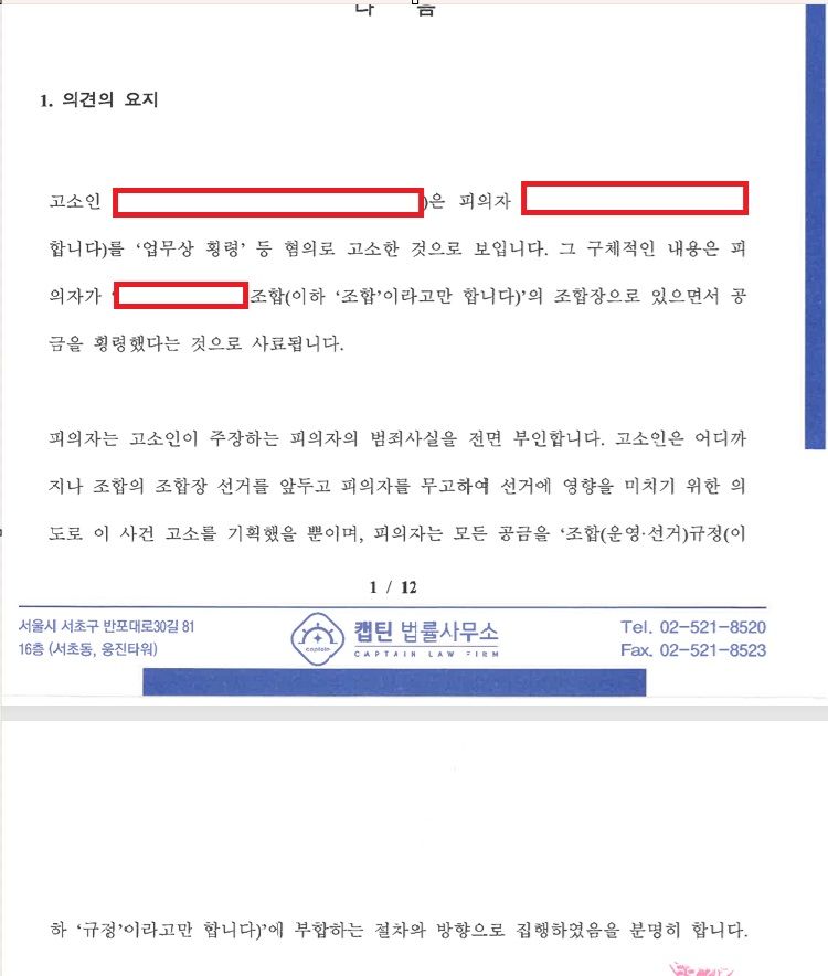 그런데 고소장을 정보공개받고 보니 이 사건 고소는 조합장 선거에 악영향을 미칠 고의로 진행된 것으로 보이는 정황으로 가득합니다. 도와주십시오.