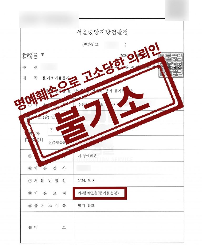 명예훼손(온라인 커뮤니티 허위사실 게시) 혐의없음 방어성공!