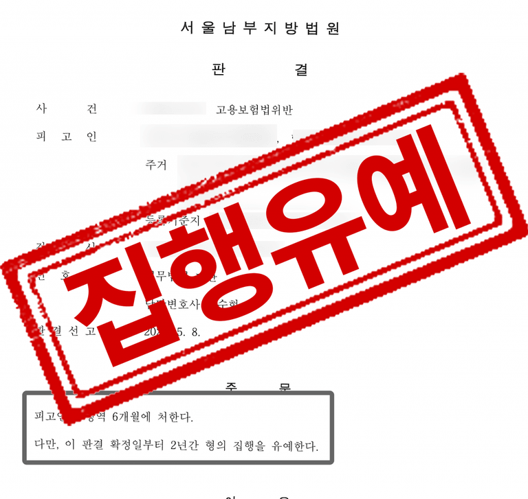 법무법인 대환은 본 사건의 특성상 의뢰인이 수급한 고용유지 지원금 액수가 적지 않고, 기간도 길어 방어하기 어려웠지만,의뢰인 측에서 부정수급액 및 추가징수금까지 모두 완납하였으며 동종 범죄전력이 전혀 없고 재범의 여지가 없는 초범임을 강조하여 그 결과 실형을 피하고 집행유예 판결을 이끌어 낼 수 있었습니다.