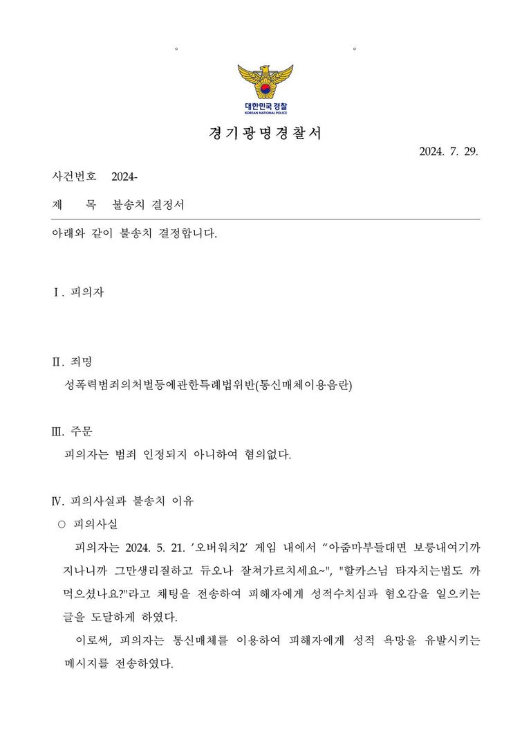 이에 경찰에서는 본 변호인의 의견대로 불송치처분을 내려주게 되었습니다.