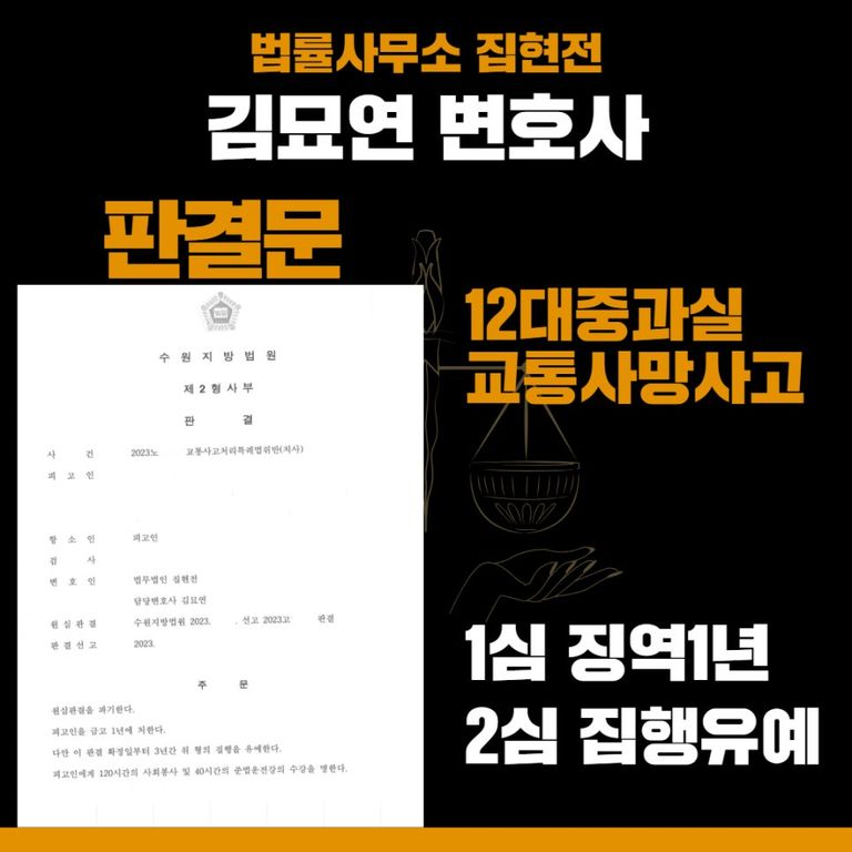 그러므로 12대중과실 교통 사망사고로 처벌받을 위기라면, 지체하지 마시고, “교통 전문 김묘연 변호사”를 찾아가 도움을 요청하시길 바라며, 언제든지 연락주시길 바랍니다.