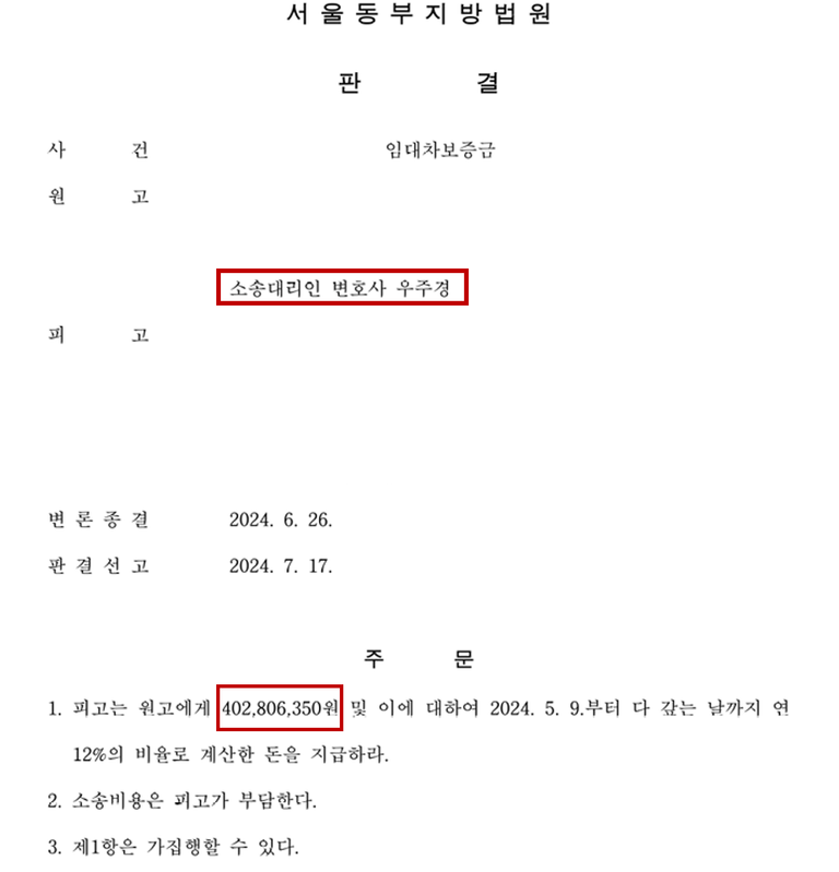 4억 원 보증금은 물론 지연손해금과 변호사비까지