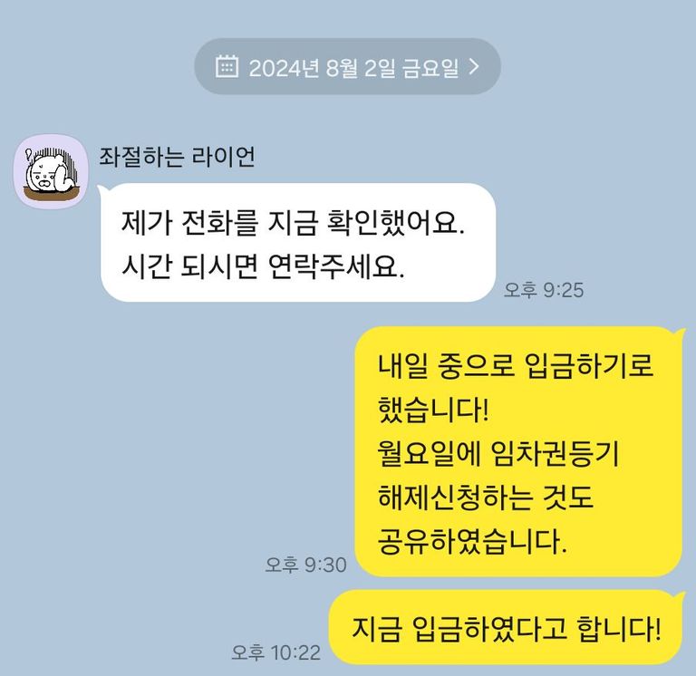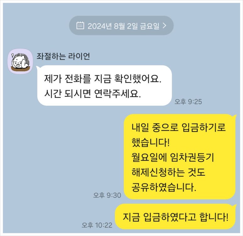 * 임대인의 연락 두절: 반환 일정 미정, 소통 불가