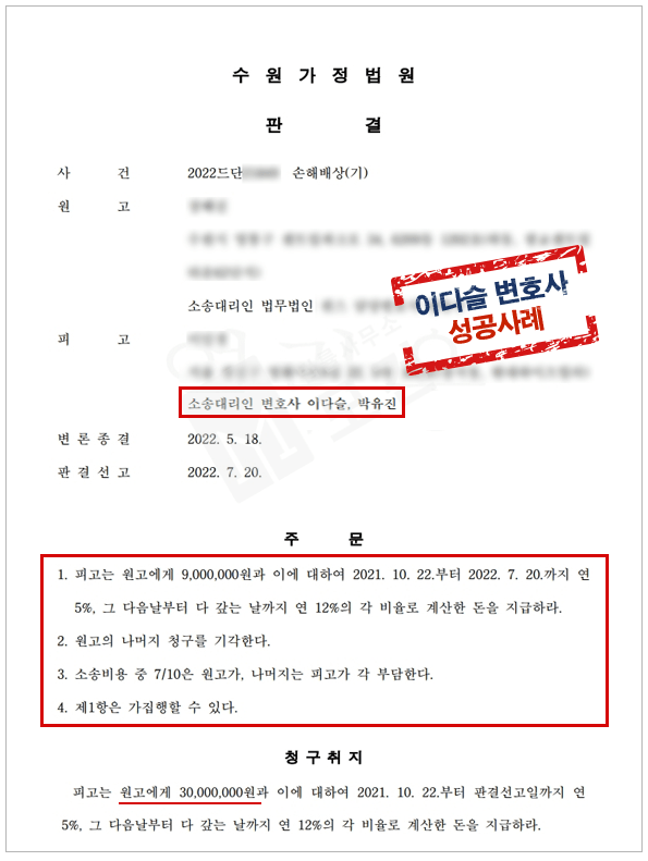 위자료 3천만원 청구했으나 900만원으로 감액한 성공사례
