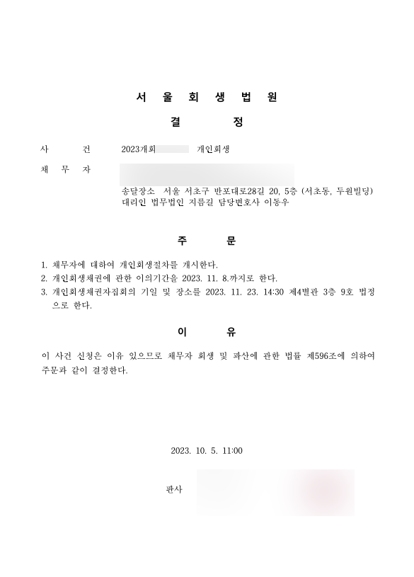 1) 최저임금에 미치지 못하는 소득이었기 때문에 원활한 변제에 대한 법원의 의혹을 상쇄할 증빙 자료를 준비하여 무사히 개시결정 및 인가결정을 받음