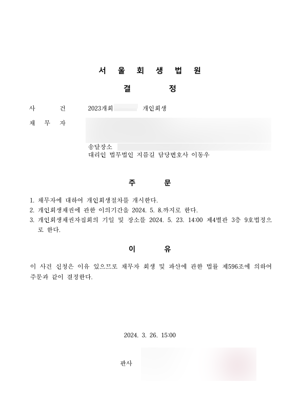 1) 최근 취업자였기 때문에 조건부인가를 걱정하였지만 2번의 보정사항을 방어하여 조건부인가 없이 변제계획안을 인정 받음