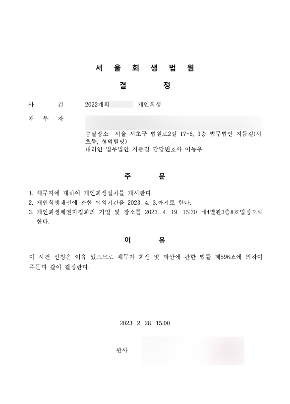 설상가상으로 당시에는 투자 열풍이 거세게 불며 비트코인에 대한 기대감이 증가하고 있었기 때문에 의뢰인 역시 코인을 통해 이윤을 기대하였지만 그마저도 좀처럼 소식을 듣지 못하게 되었습니다. 결국 한 번의 행운으로 일확천금을 얻을 수 있다는 생각에 도박에 매달리게 되셨고, 뒤늦게 가족을 생각하며 개인회생을 신청하기로 마음먹게 되셨습니다.