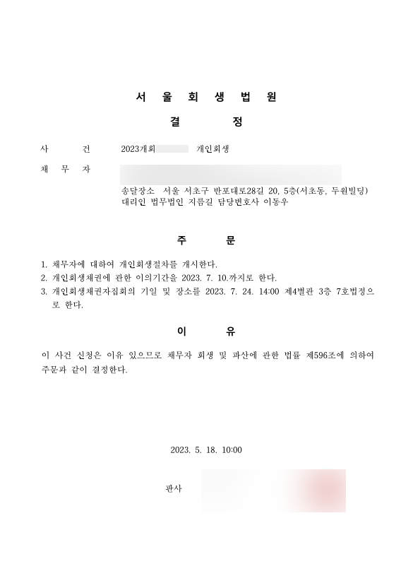 2) 적지 않은 채무 금액이었지만 대부분 생활고로 인한 채무 돌려막기였음을 소명하고, 서류 제출 역시 정리해야 할 부분에 대해 법무법인에서 처리하였던 만큼 번거로운 절차가 없었음