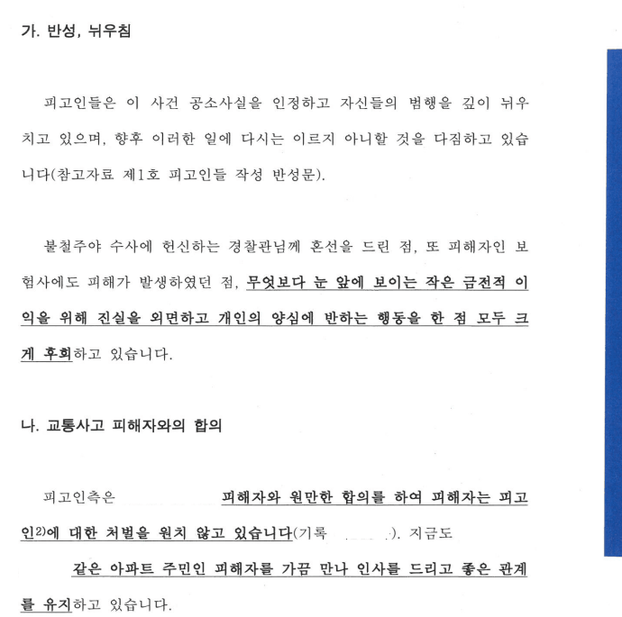 [변호인의 실제 제출한 의견서 중 일부]