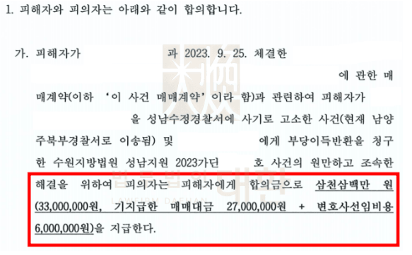 법무법인 대환은 피의자들이 매도인의 위임을 받지 않았으면서도 이를 속이고 매매계약을 체결한 뒤 매매대금을 수령하여 편취하였음을 소명하여 사기죄로 고소하는 한편, 민사 소송도 병행하여 제기하던 중 피의자로부터 합의 연락이 왔고, 피해금 전액 환수 및 변호사비용 600만 원까지 추가로 합의하여 전액 수령하였습니다.