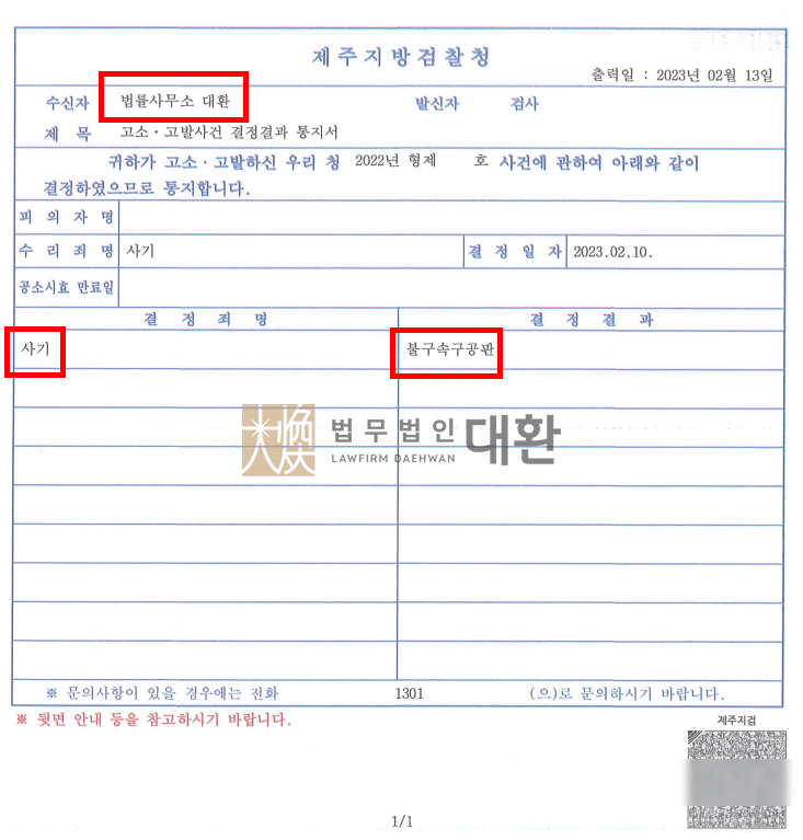 법무법인 대환(법률사무소 대환)은 의뢰인을 위해 분양대행사 사업체 통장을 가압류하고, 분양대행사 대표를 사기 혐의로 고소하였습니다. 결국, 분양대행사는 뒤늦게 시행사에 잔금을 지급하고 의뢰인에게 부동산을 인도하였고, 별도의 손해배상금을 지급하는 합의까지 마쳤습니다.