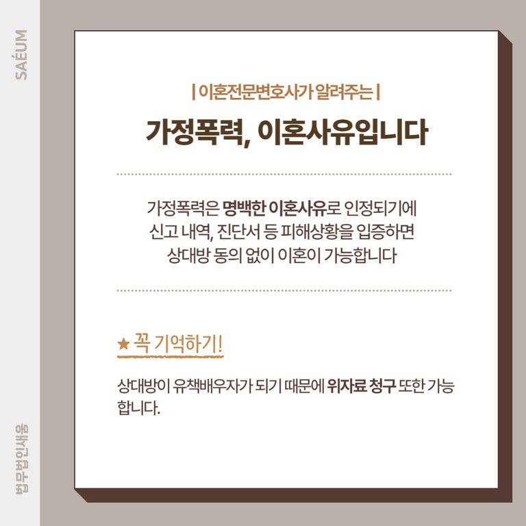 가정폭력이혼, 법적으로 인정받을 수 있습니다