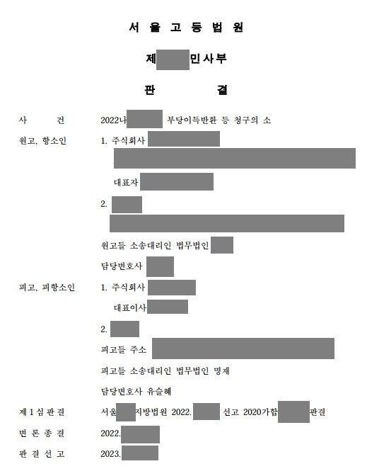 1심에서는 원고가 주장하는 ‘백업’ 계약의 존재가 인정되지 않아 원고의 청구가 모두 기각되었습니다. 이에 원고는 항소를 하면서 주위적 청구로는 1심의 청구취지를 그대로 주장하면서, 예비적 청구로 원고 회사의 대표가 주주로서의 권리나 사업 추진에 따른 이익 배당을 받기 위해 회비를 납부하였음에도 회비 납부에 따른 반대급부를 받지 못하였으므로 부당이득에 해당하니 반환하라는 주장을 하였습니다.