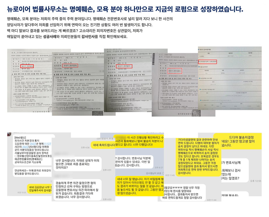이러한 발자취를 남기며 직장명예훼손 사건에서 다양한 성공사례를 이끌어온 것은 물론,