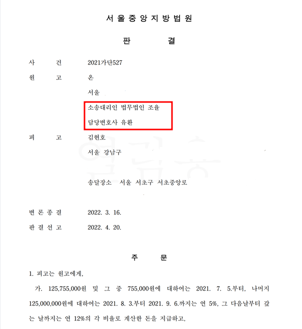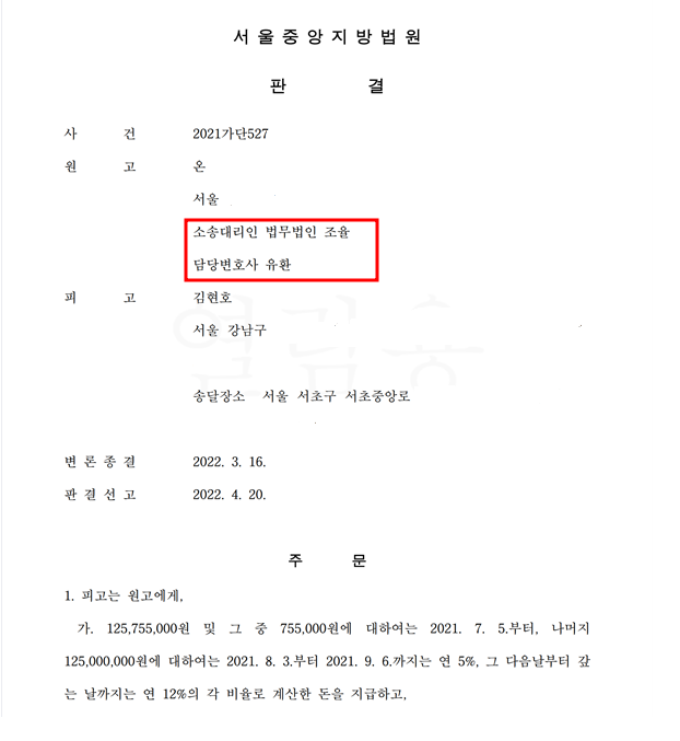 소송 결과 저희가 주장한 모든 손해가 인정되어 판결되었는데요.