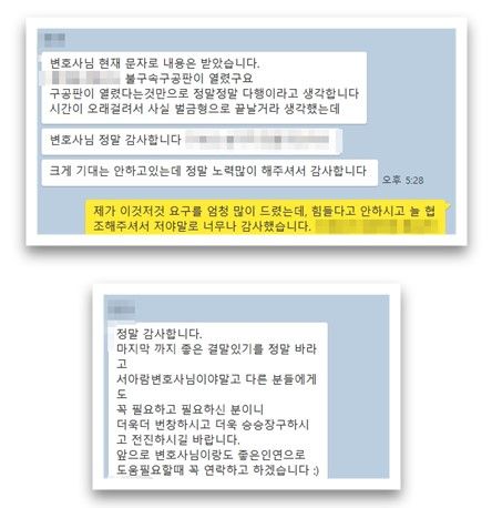 그럼, 다음에도 또 좋은 내용의 성공사례로 찾아뵙도록 하겠습니다(사실 오늘 또 좋은 사건 결과가 하나 나와서 바로 성공사례를 써야 하는..). 더운 날씨에 모두가 건강 조심하세요!