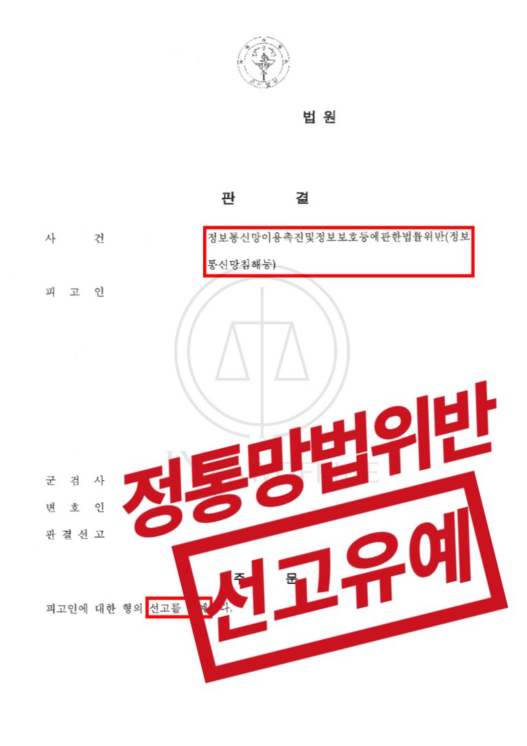 본 사건의 의뢰인은 정당한 접근 권한 없이 피해자의 정보통신망에 침입하여 '정보통신망법위반(정보통신망침해등)' 혐의를 받게 되었습니다. 이에 사건에 대한 법리적인 자문이 필요했던 의뢰인은 본 JY법률사무소를 찾아 사건을 정식 의뢰해 주셨습니다.