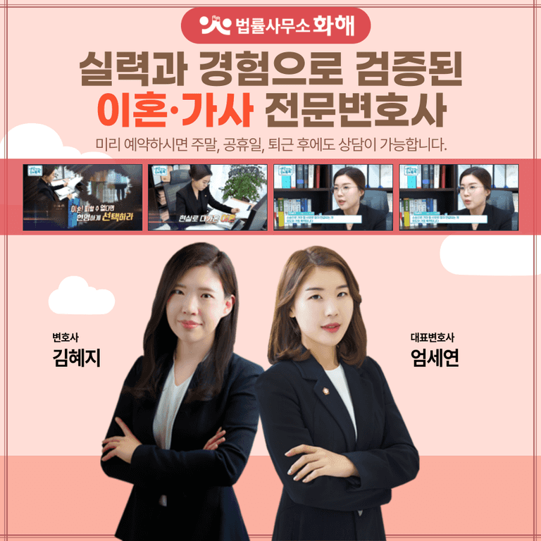 안녕하세요. 불화가 가득 찬 세상에서 상처 없는 ‘화해’를 위해 의뢰인의 곁을 함께 하는 법률사무소 화해입니다.
