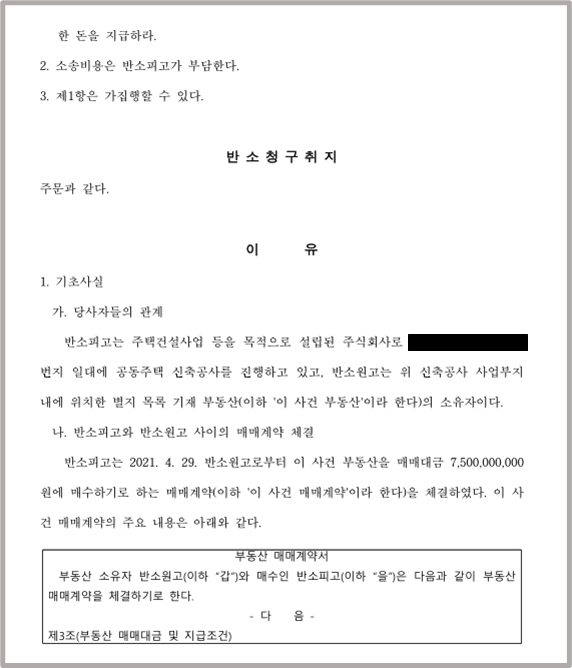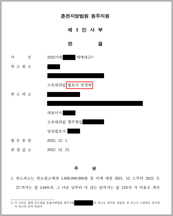 재판부는 저희 주장을 모두 받아들이셨고, 먼저 화해권고결정을 통해 반소원고의 주장대로 추가 매매대금을 지급하라고 하셨는데, 회사가 이에 이의하자 반소원고의 주장을 모두 인용하는 판결을 다시 하셨습니다.