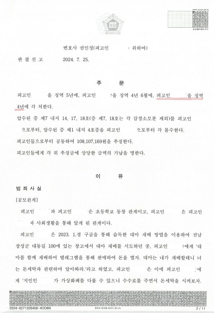 위 사안은 지인들끼리 비닐하우스 등에서 대마를 다량 재배하여 유통한 혐의로 체포된 사안이었습니다.